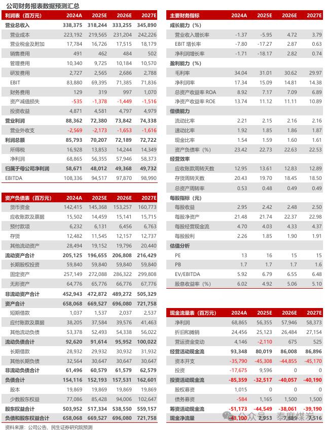 Ø 投资建议:公司经营稳健、通过资产注入优化资源配置,不考虑本次资产重组,我们预计2025-2027年归母净利润为480.12/493.68/497.32亿元,对应EPS分别为2.42/2.48/2.50元,对应2025年8月15日股价的PE分别为16/15/15倍。维持“推荐”评级。